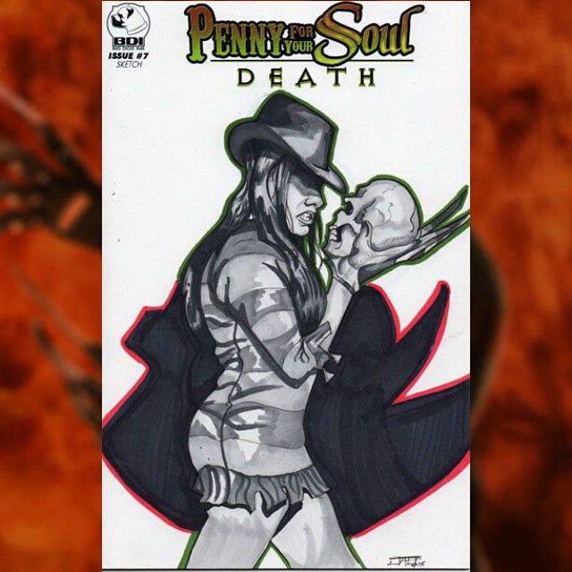February 21st is the date for NWI Comic Con and to add to the fun, I will have two new sketch covers, three new vinyl figures, and a bunch of new prints all of which will make their physical debut at the con. I know, I post on instagram and twitter with updates of my latest stuff, but you’ll be able to see the pieces in person and maybe buy them. Along with the new stuff will be an exclusive just for the NWI Comic Con Auction. This piece is a sketch cover for Big Dog Ink’s Penny For Your Soul title. The cover features a female Freddy Krueger (can be seen below). All proceeds of the auction go towards two different charities.