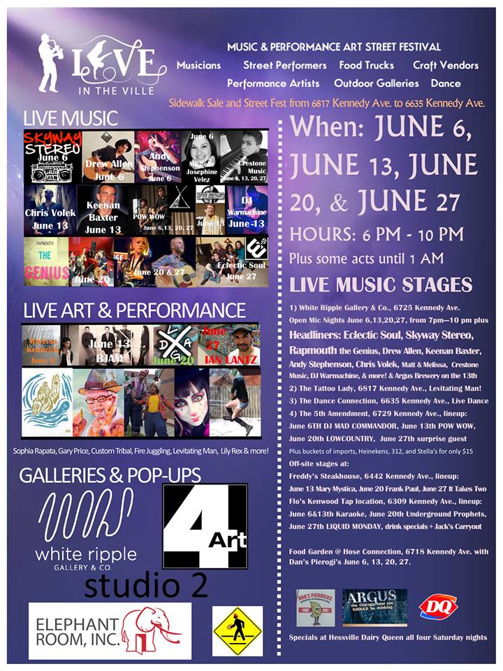 The final event for Saturday will be the second night of the Live In The Ville event. Not only will my studio be open to the public (2nd floor of White Ripple Gallery & Co. 6727 Kennedy Ave. Hammond,IN), but I will also performing my final DJ set. The studio will have prints and original artwork for you to purchase. You can see the flyer for this event below.