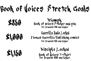 With 9 days left on the Kickstarter for Book of Voices we have unlocked the first stretch goal. You can pre-order your copy at https://www.kickstarter.com/projects/128550396/book-of-voices/posts/2363552