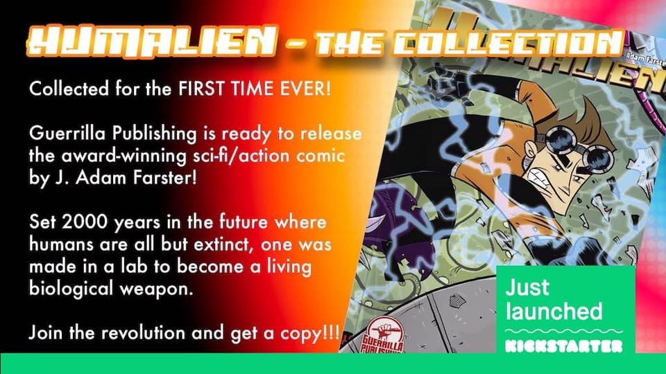 Attention, Sci-fi Comic fans! Guerrilla Publishing just unveiled their latest masterpiece, Humalien, on Kickstarter. It’s a mind-bending futuristic adventure featuring the one-of-a-kind (sorta) human on the planet. Created from a fusion of human and alien DNA, Ed is the Trinity’s ultimate living weapon.
