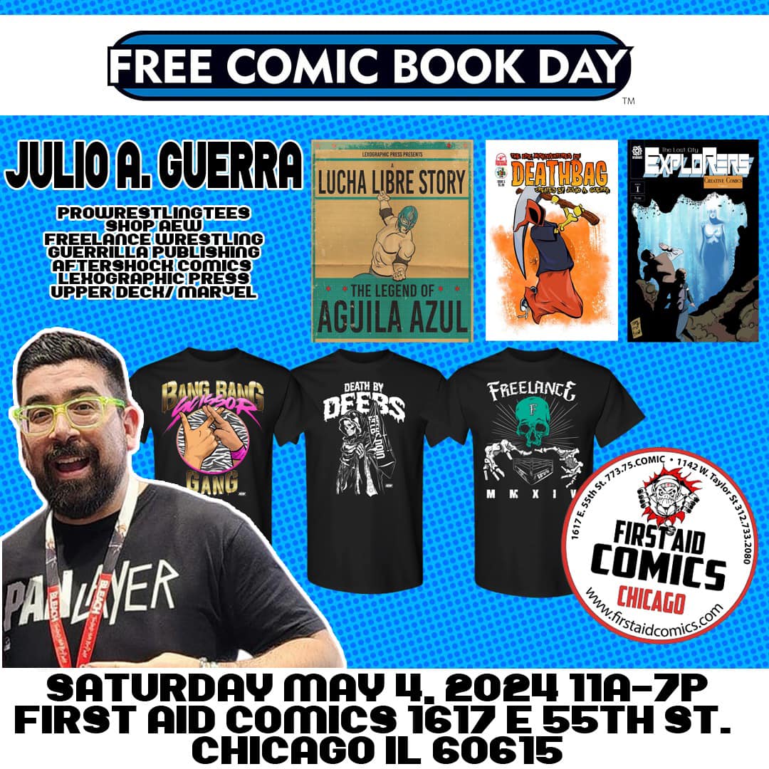 Free Comic Book Day, Saturday May 4 2024, I will be at First Aid Comics (Hyde Park Location) in Chicago, IL. I will have prints, originals, stickers, original sketch cover comics, and various titles I have worked on.