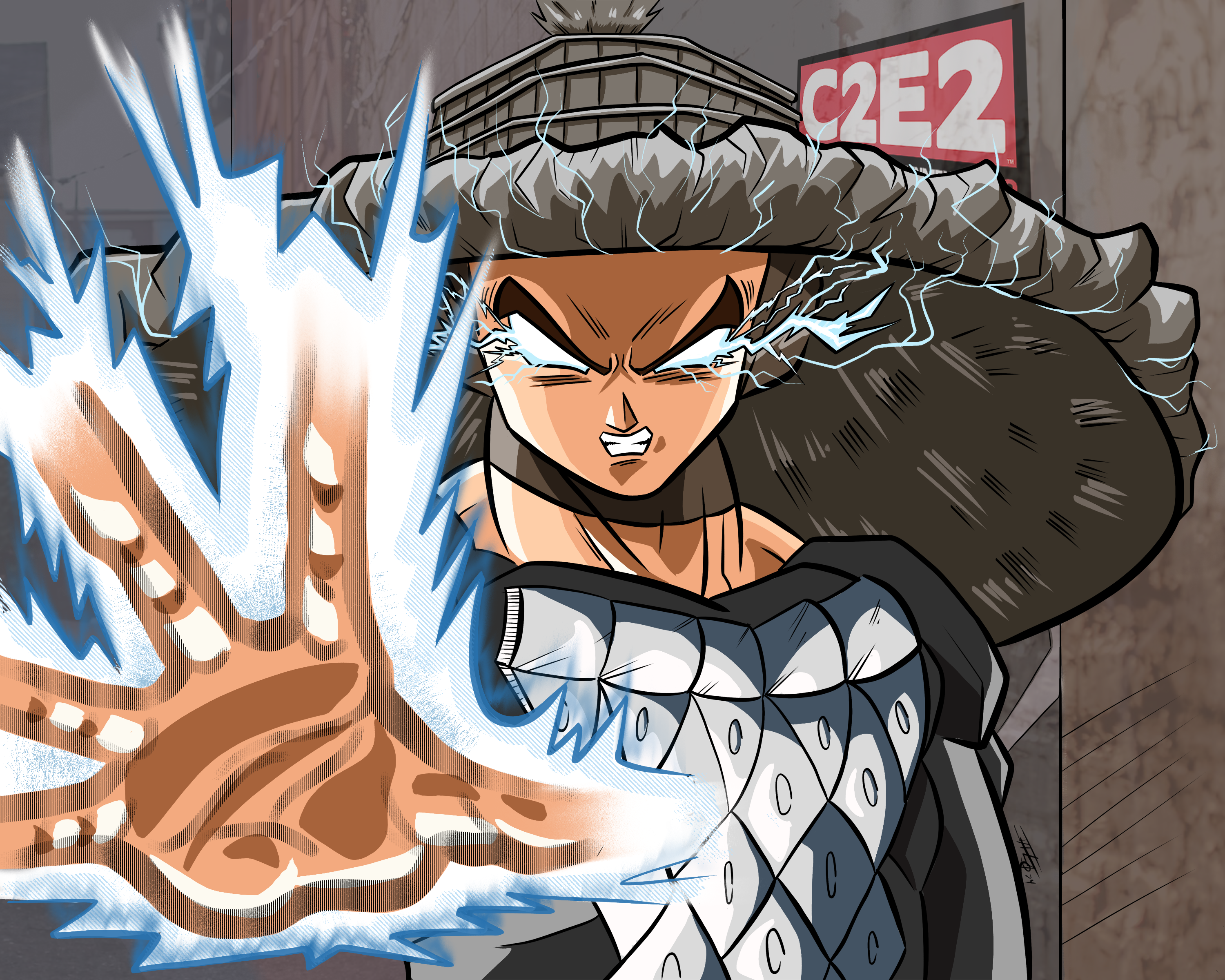 Zombie Unicorn Comics booth 1653 DBZ inspired 8×10 art print for James Pax (Lighting from the movie Big Trouble in Little China)