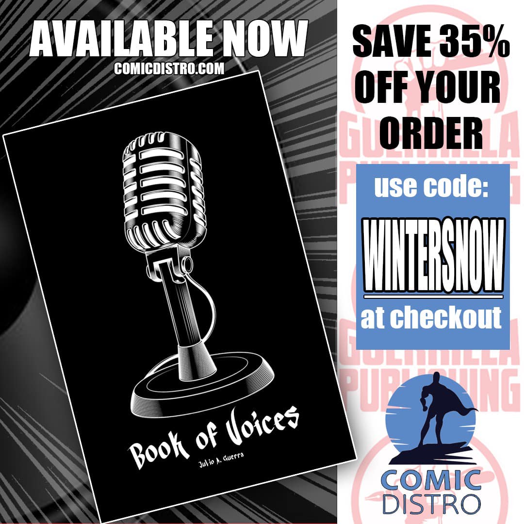 The best-selling musical sketchbook by Julio A. Guerra, Book of Voices, is finally reprinted and available NOW at ComicDistro.com! ![]()