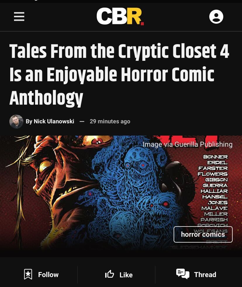 The leading site for comic book and pop culture, CBR.com (Comic Book Resources) has just released a review on Tales From the Cryptic Closet 4. You can read the article here.