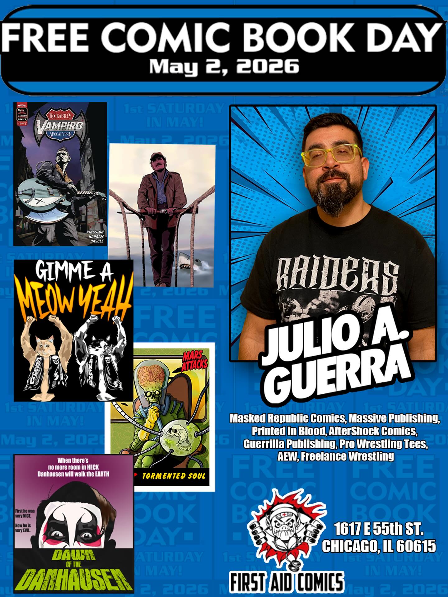 Saturday May 2 is Free Comic Book Day and I’ll bet at FIRST AID COMICS (Chicago, IL Hyde Park Location)